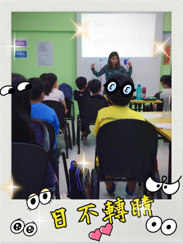 我坐在後面,覺得學生脫口而出的句子「他和手錶住在一起」、「手錶是他的朋友」、「他和手錶吃飯」都像是亮晶晶的詩句呢!