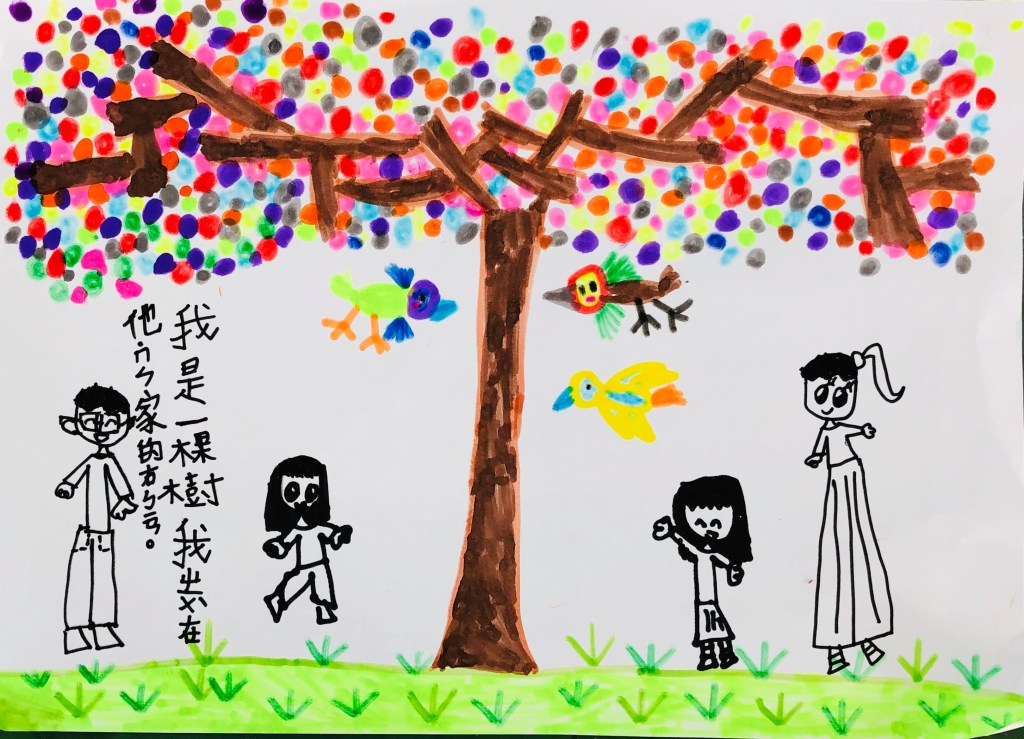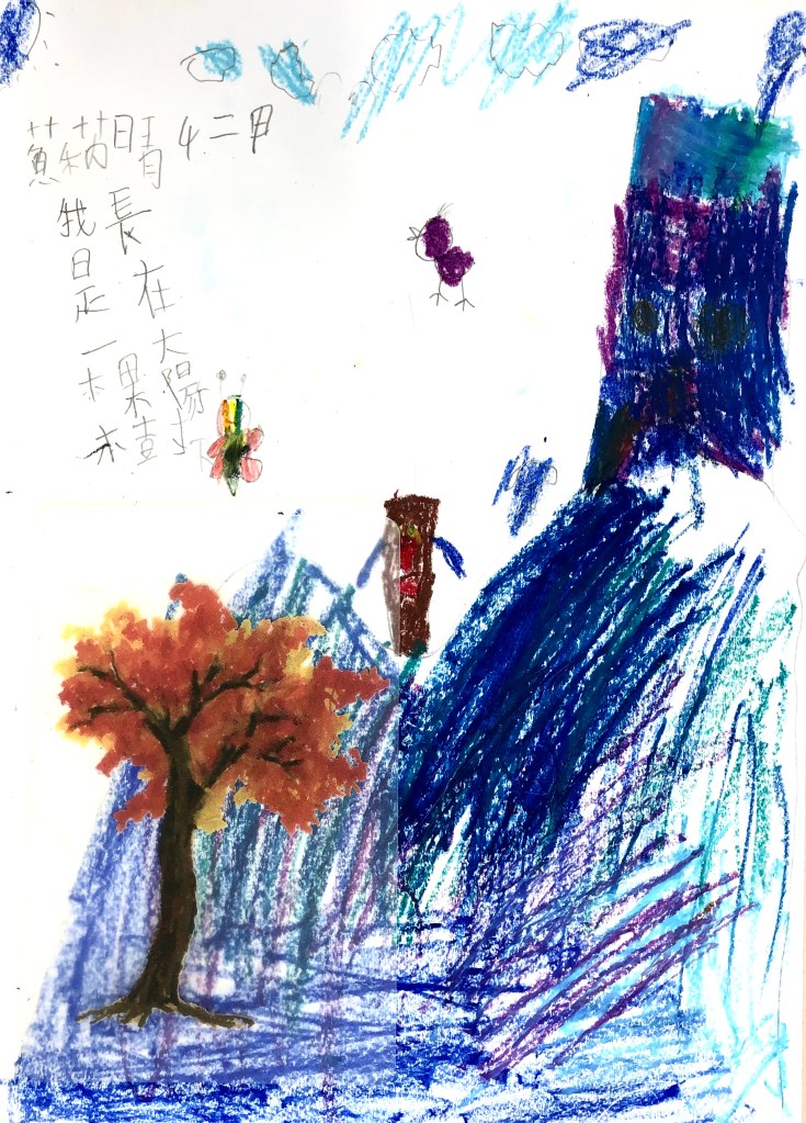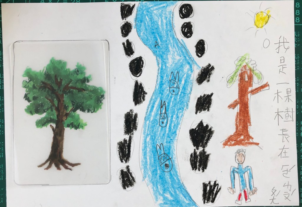 從森林裡的樹到城市裡的樹,帶領低年級學生從觀察樹的經歷到揣摩樹的感受,在共讀和討論之後,想像自己是一棵樹,藉由圖卡、繪畫和簡單的句子,呈現出來。