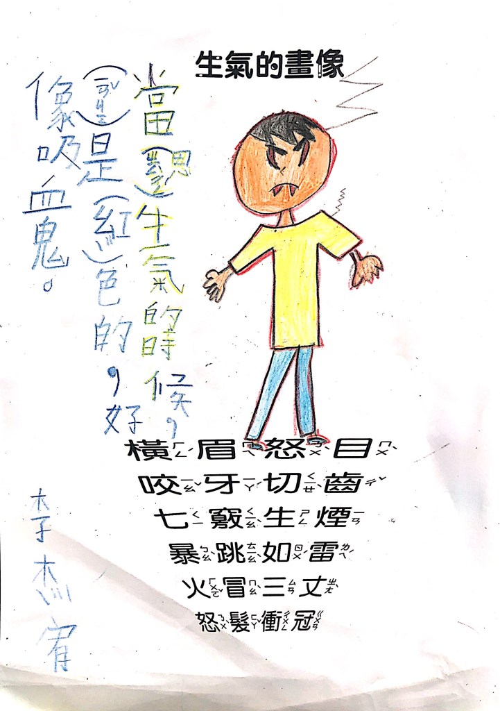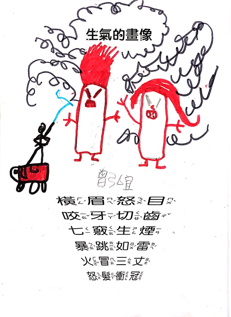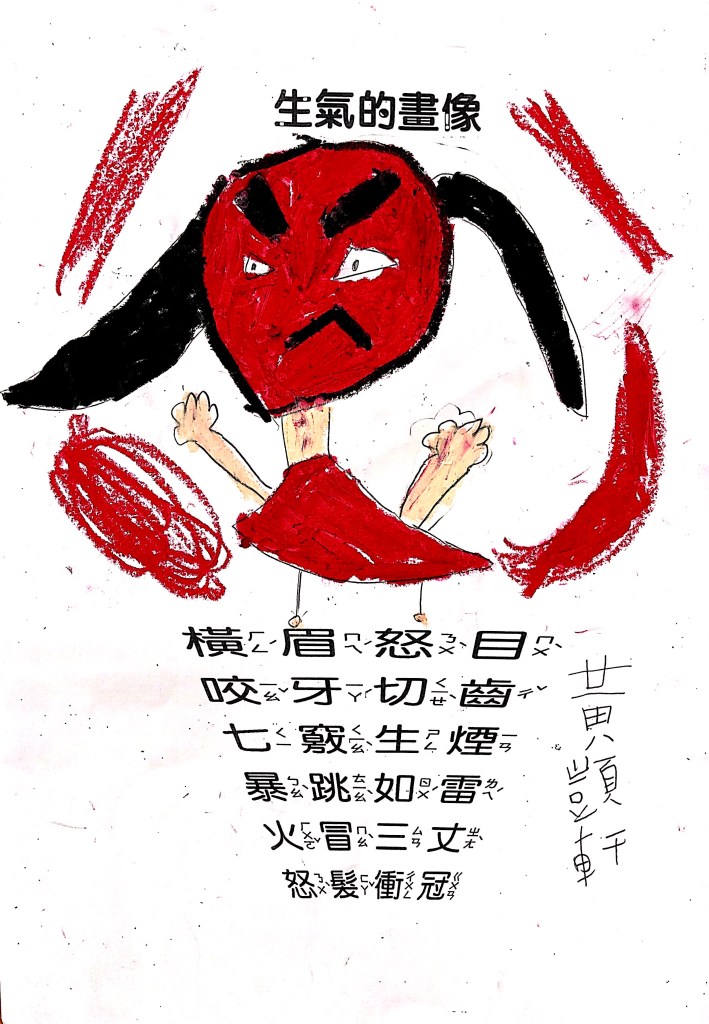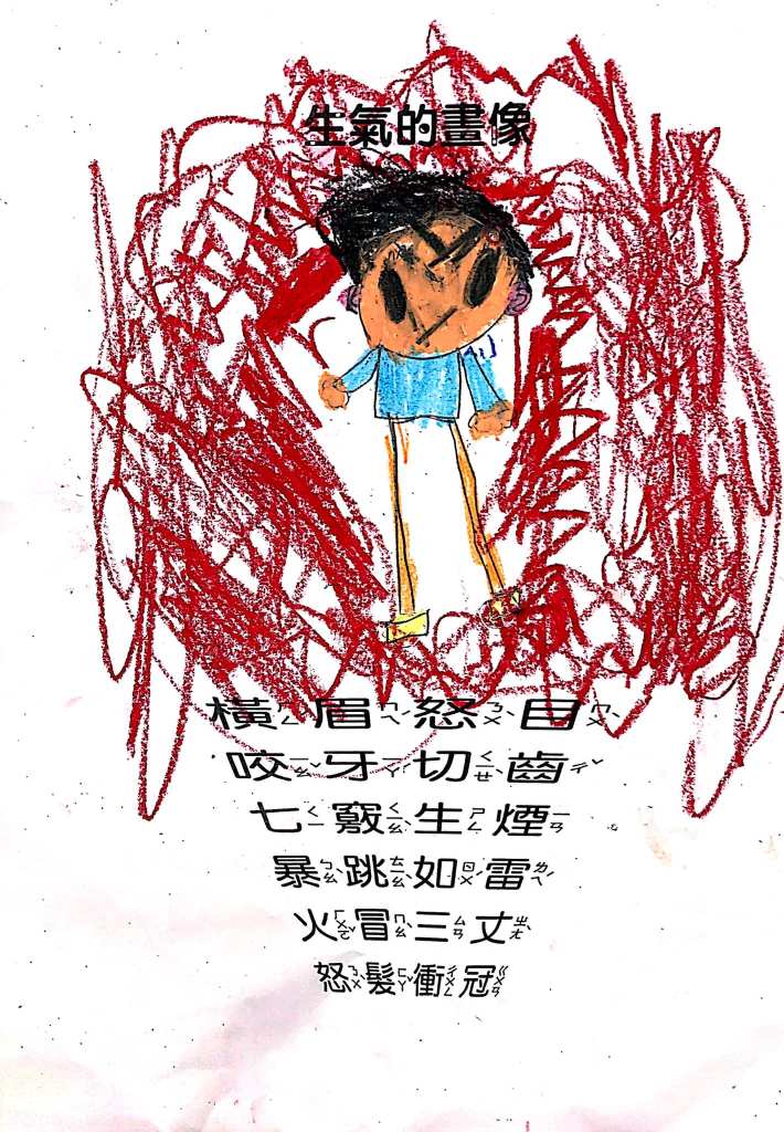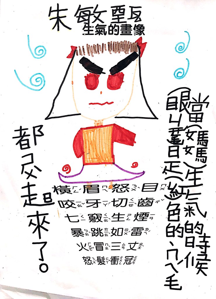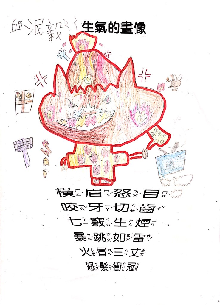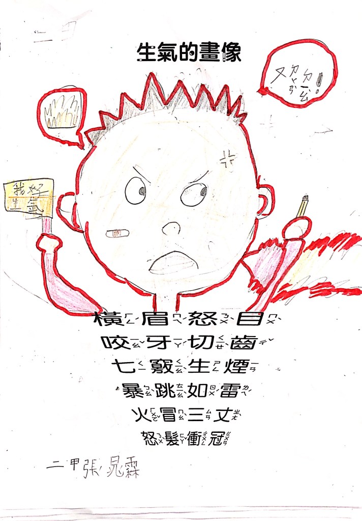 順便認識成語吧:怒目橫眉、咬牙切齒、暴跳如雷、怒髮衝冠,五官四肢都有戲,動一動擺一擺就全懂了~
