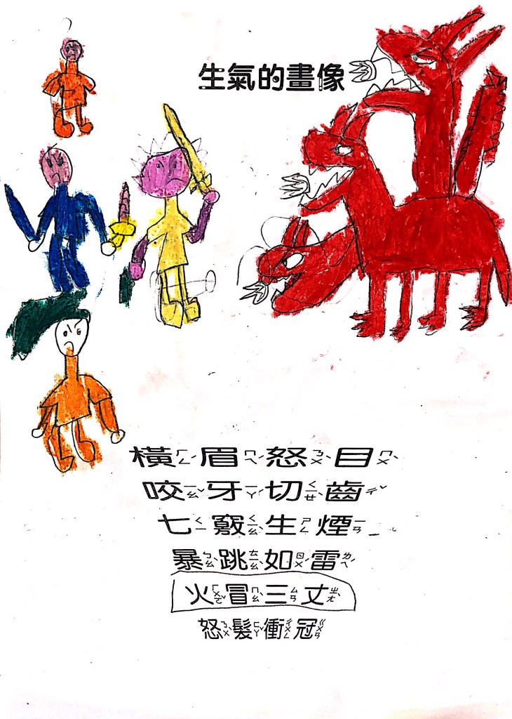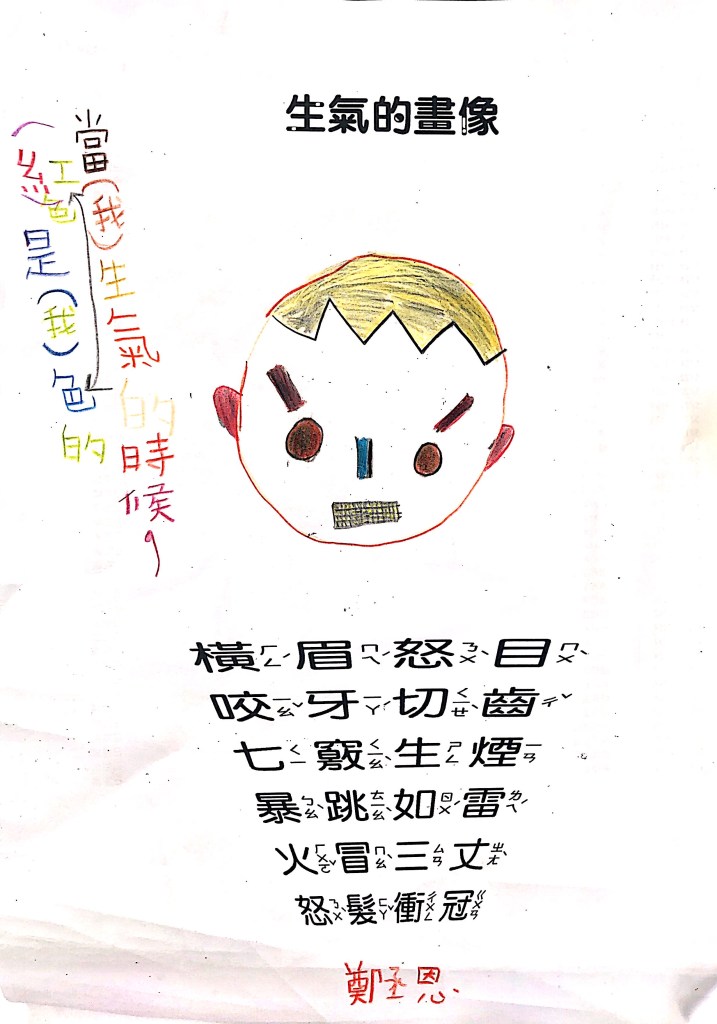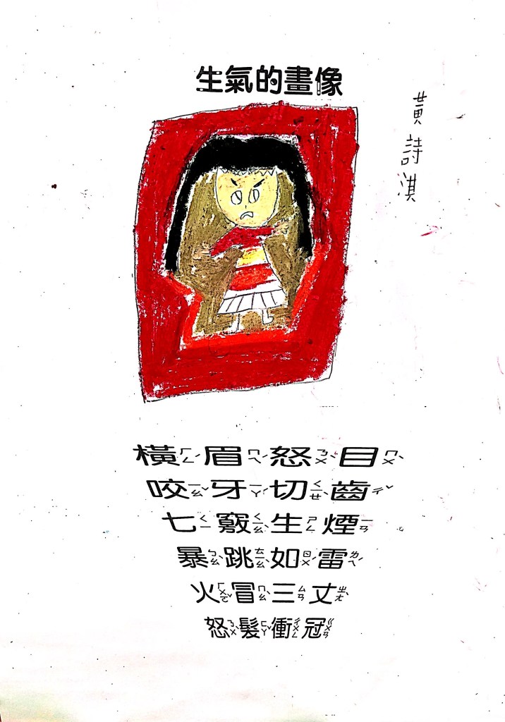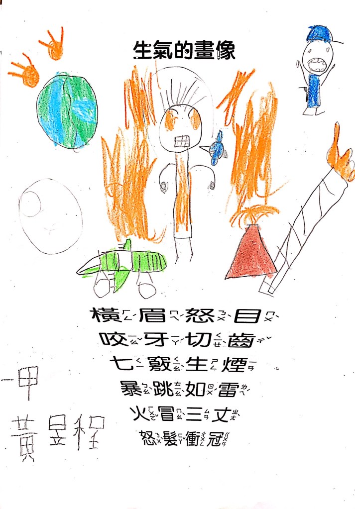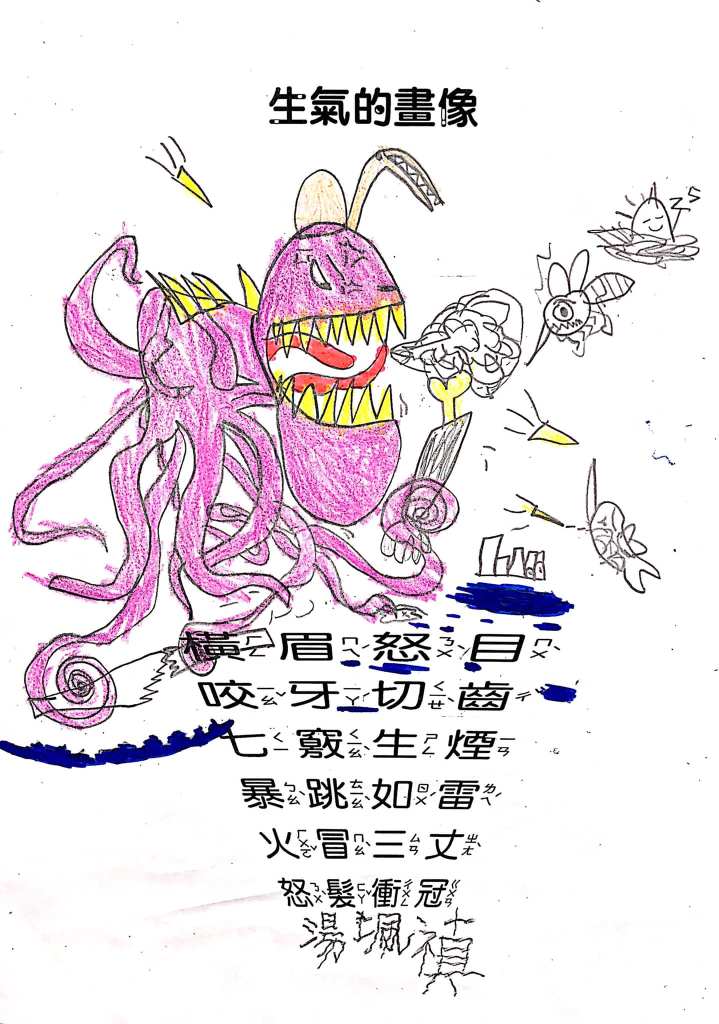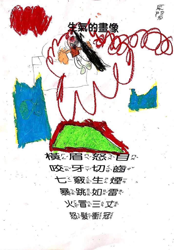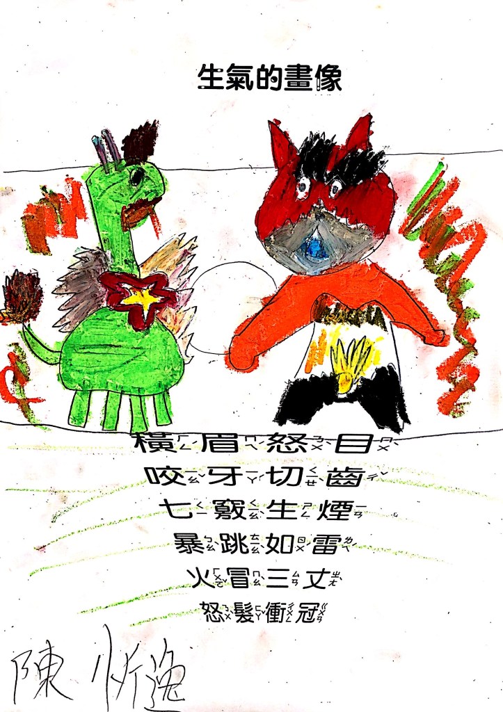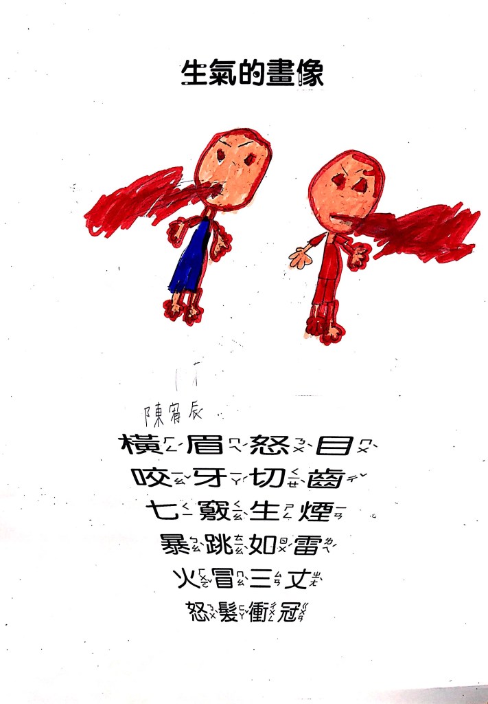 順便認識成語吧:怒目橫眉、咬牙切齒、暴跳如雷、怒髮衝冠,五官四肢都有戲,動一動擺一擺就全懂了~