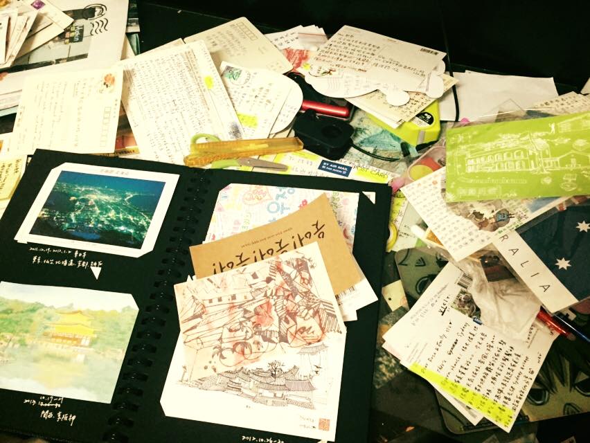 我收藏了大量明信片,貼上世界各地的郵票,帶著郵戳飄洋過海的紀念品。