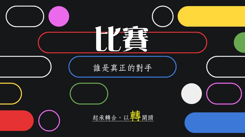 一場個人賽,一場團體賽,一場無形的比賽,在每一場比賽裡,多認識自己一點。