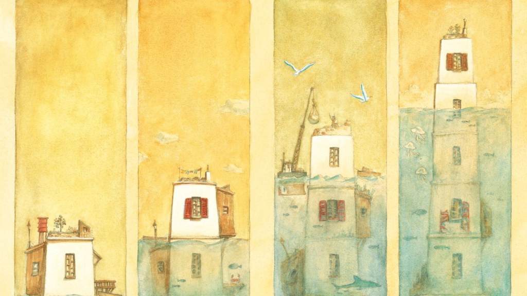 荊棘包住了他們的房子,他們走上樓梯,準備材料又蓋了一間房子。過了不久,荊棘一層又一層的爬上來了,他們也蓋了一層又一層的房子。他的小美死掉了。
