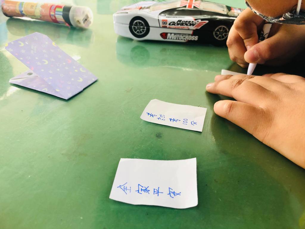 有學生說「希望能交到朋友」,有學生說「希望爸媽不吵架」,當然也有更多「希望考第一名」、「希望考100分」等貼近課業的願望 。