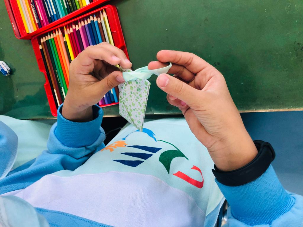 學生透過簡單的摺紙,將願望和守護的心情,收藏在平安符裡,帶著明亮的希望,展開這學期的圖書館閱讀活動。