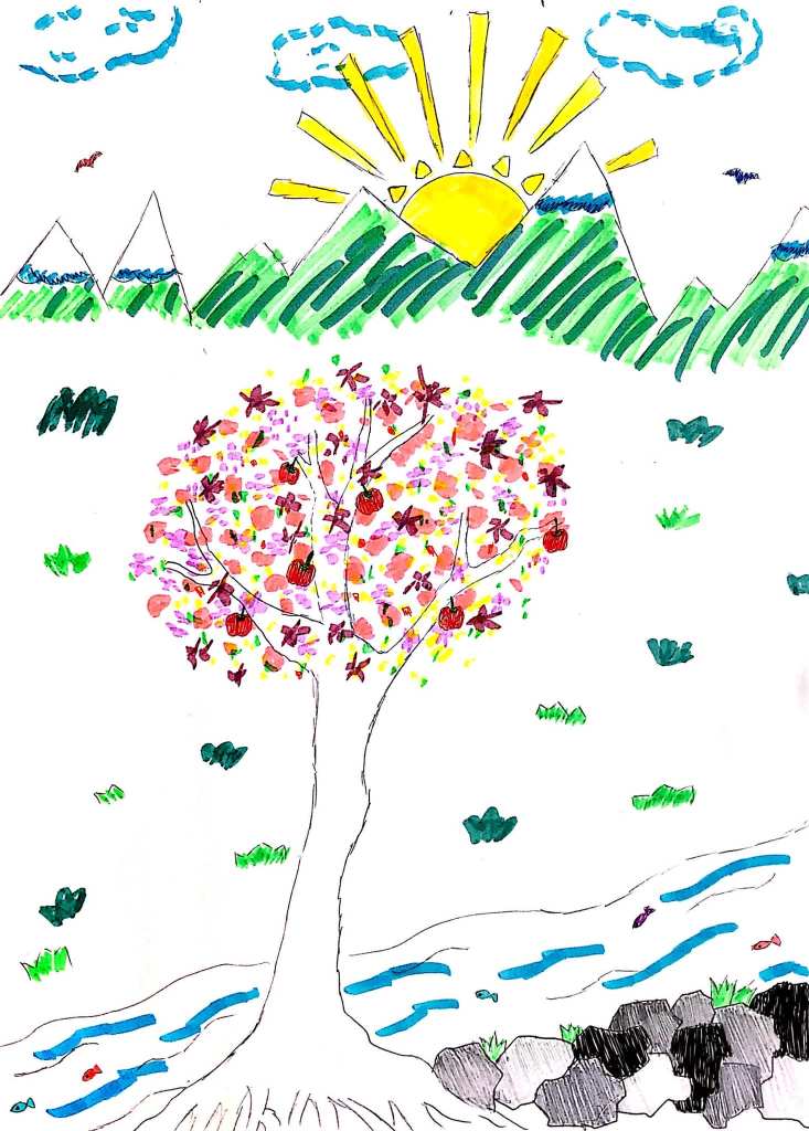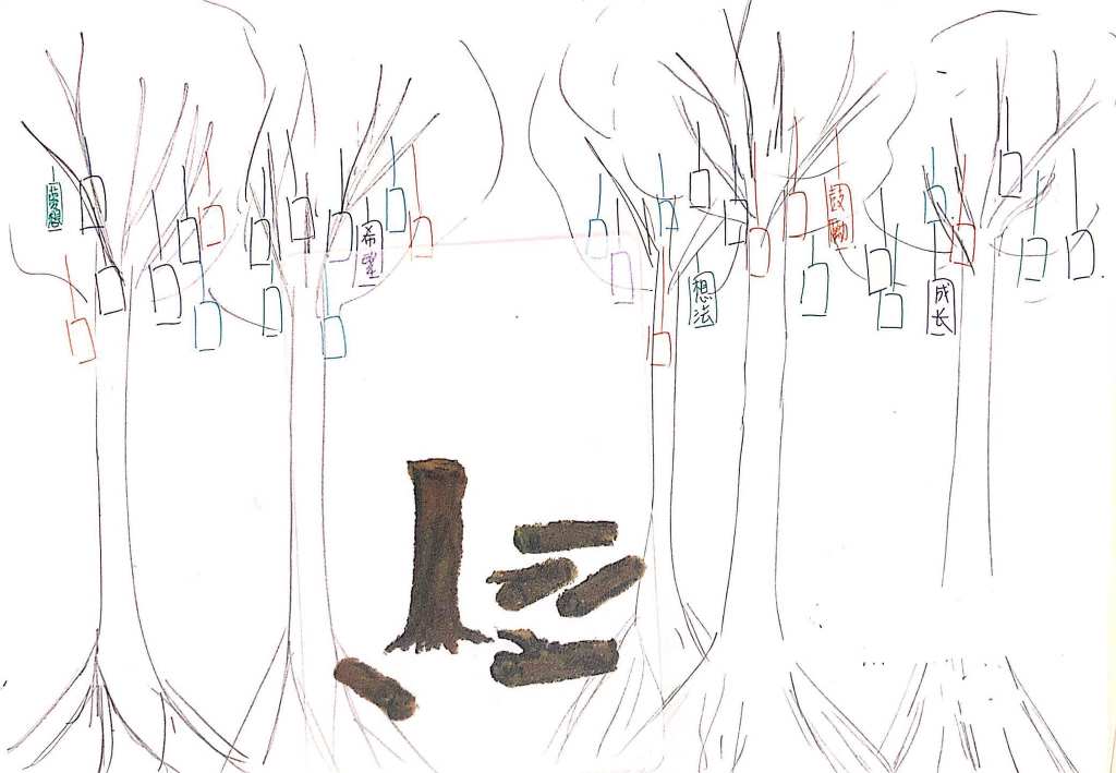 女孩先交上畫紙,我以為她畫的是其中一棵彩樹。