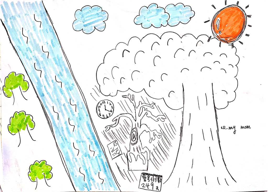 「可是畫的感覺是溫暖的,你看太陽和樹,還有流動的河。媽媽雖然給你壓力,可是也給你很穩定的支持和保護,對嗎?」