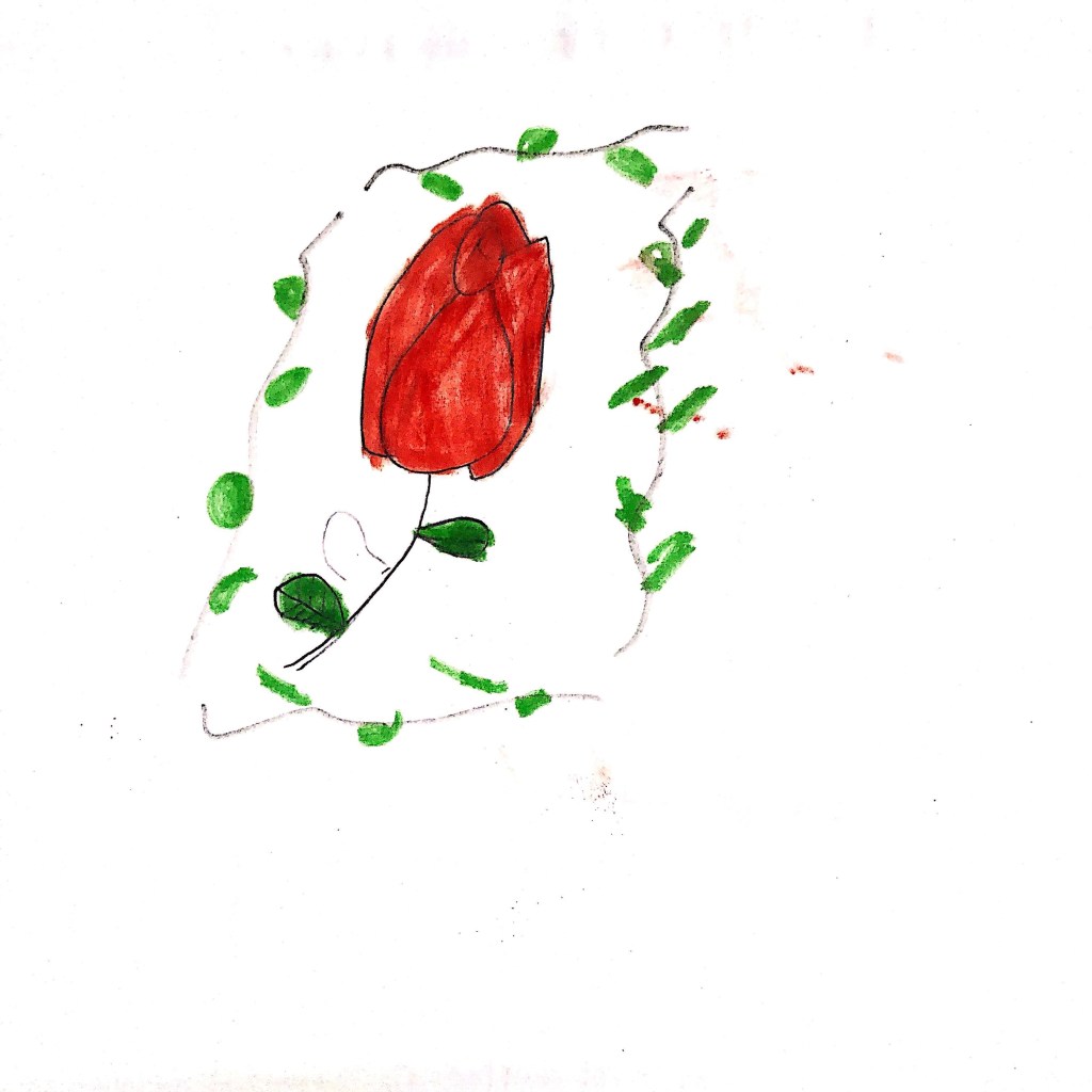用一朵玫瑰花,寫一首詩,貼一張畫。