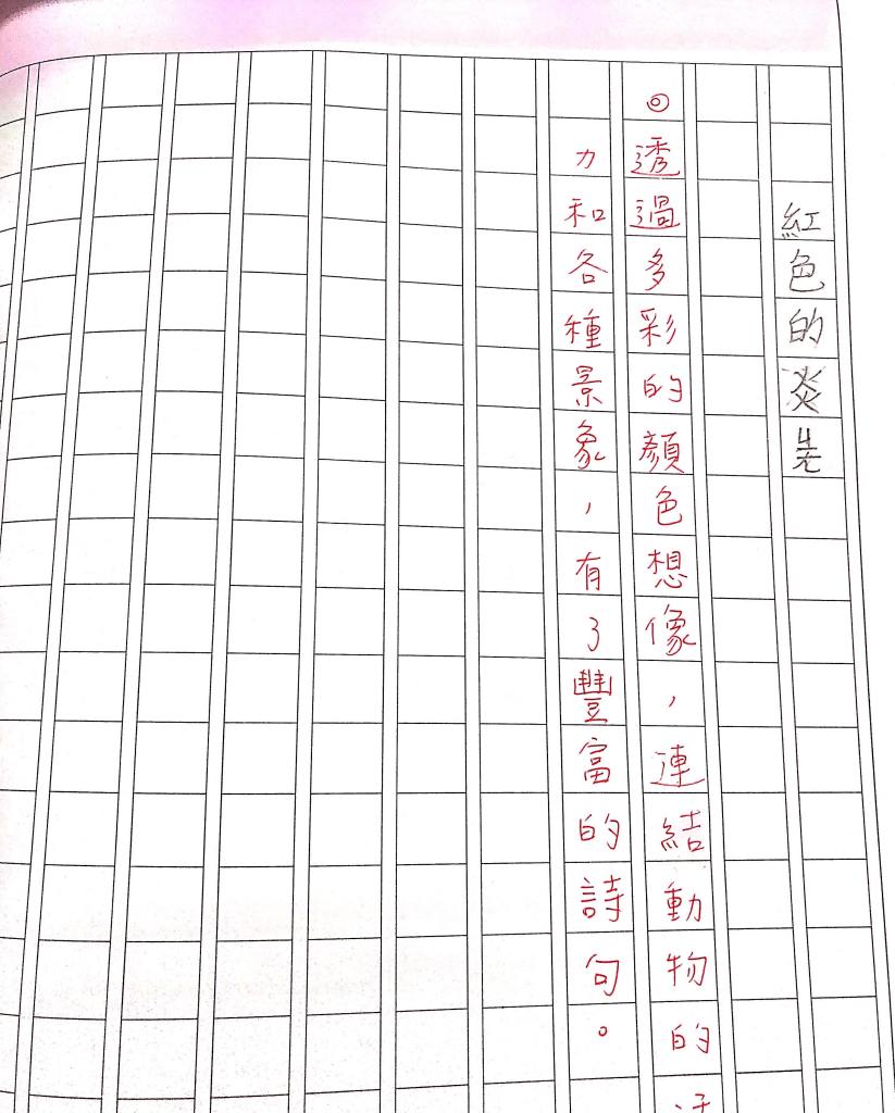 學生紛紛喊著「可以到另一個花園找」、「白玫瑰也很漂亮呀」、「怎麼不用顏料塗」……聽他們著急地提出更好的方法,我說:「這是愛情故事啊,夜鶯能想到付出愛的方式,就是犧牲自己。」