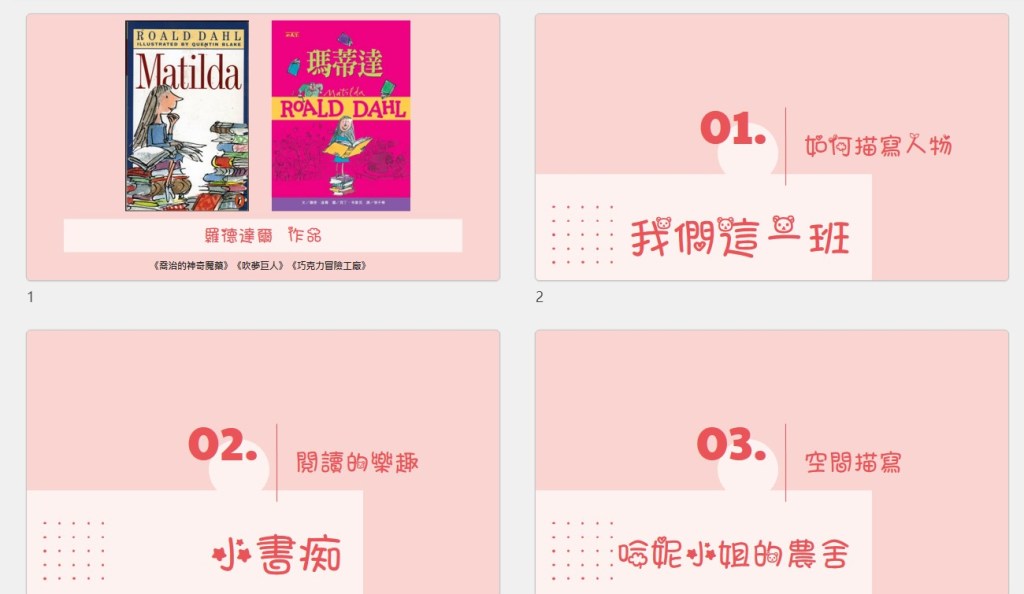 電影裡多重的敘事手法與豐富的感官刺激,啟發孩子更多想像與討論。在電影之後我們回到文本,閱讀故事之王的文字,學習如何描寫人物、描繪空間。