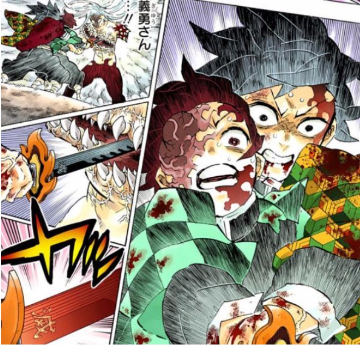 炭治郎重傷昏厥,義勇浴血提刀,艱難的站出來: