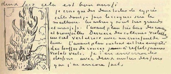 梵谷曾畫了一幅拇指般大小的素描寄給弟弟西奧,(他常常這麼做,將畫作草稿附在信裡)。