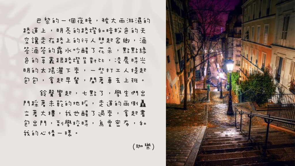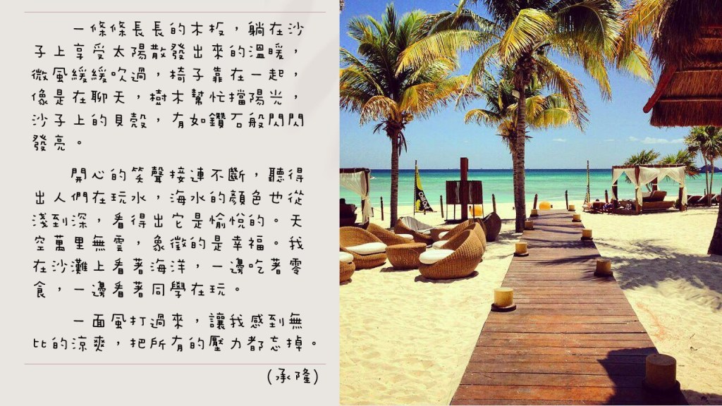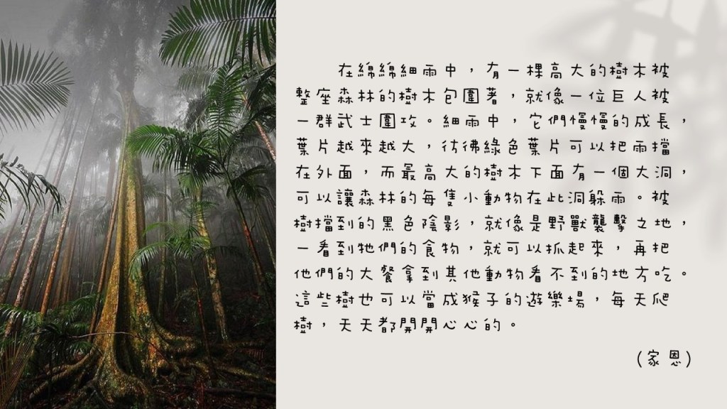 有機會讓孩子慢下腦袋轉速,仔細琢磨用字,描繪圖片裡的景象,實在是好珍貴的練習。