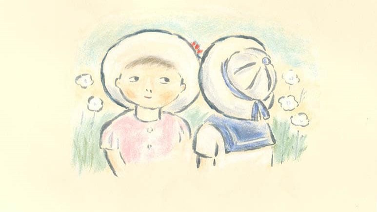 女孩的帽子被風吹走了,於是爸爸買了新的帽子,有別於舊帽子上的小紅花,新帽子上是滾紅邊的蝴蝶結。