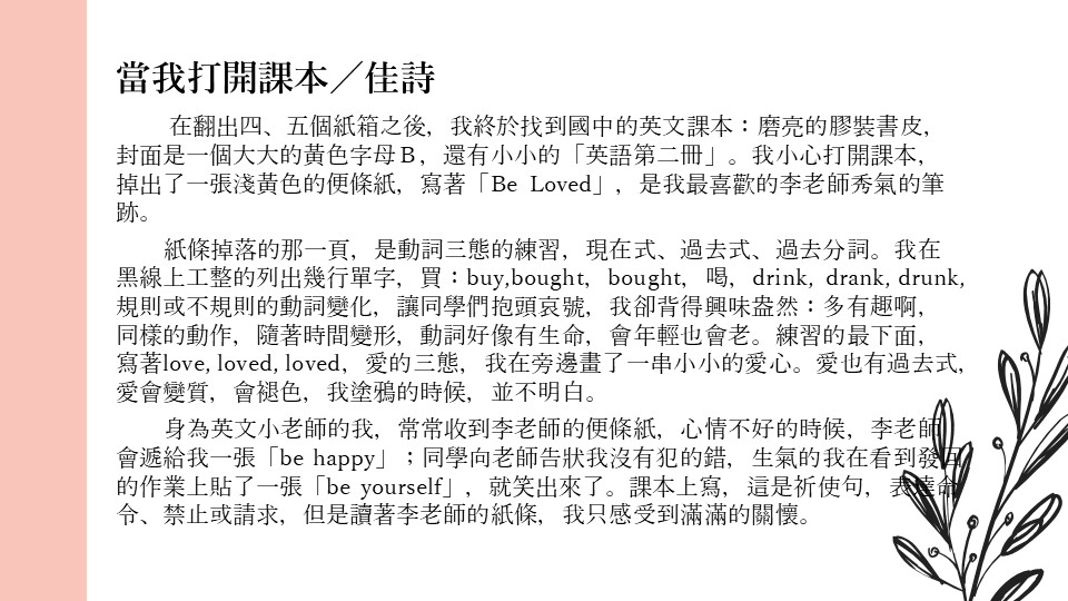 延伸閱讀:運用四段式框架寫「當我打開課本」