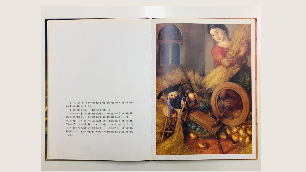 小小人能將稻草紡成金線,陌生的情節在亮金色澤裡糊糊的連結幼時記憶。手指滑過圖畫裡細緻的筆觸和標楷字體:我真的沒有讀過這個故事嗎?